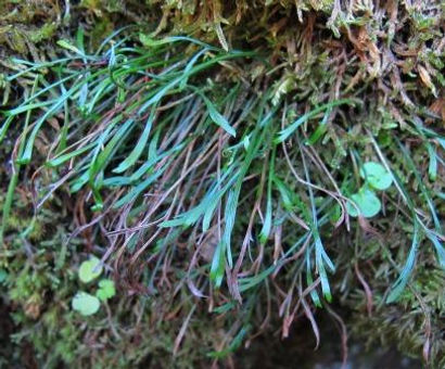 Descrizione: Pianta per enne alta 5-10 cm, con foglie ridotte a 2-4 segmenti lineari-spatolati (1-2 x 10-15 mm), dentellati all'apice, a disposizione dicotoma. I sori confluiscono in un unica massa lanceolato-lineare, ricoprente tutta la superficie inferiore del segmento.