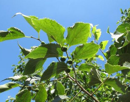 Descrizione: Albero alto 10-25 m, con corteccia compatta, fessurata solo in tronchi longevi, rami giovani, pubescenti. Le foglie hanno un picciolo di 5-15 mm e lamina lanceolata-acuminata, lunga circa il doppio della larghezza, seghettata, di 2-6 X 5-15 cm, alla base cuoriformi o rotondate. Fiori maschili e bisessuali (2-3 mm) nella stessa inflorescenza. Frutto subsferico con diametro di 8-12 mm. E' una drupa biancastra, che ocn la maturazione diviene più scura.